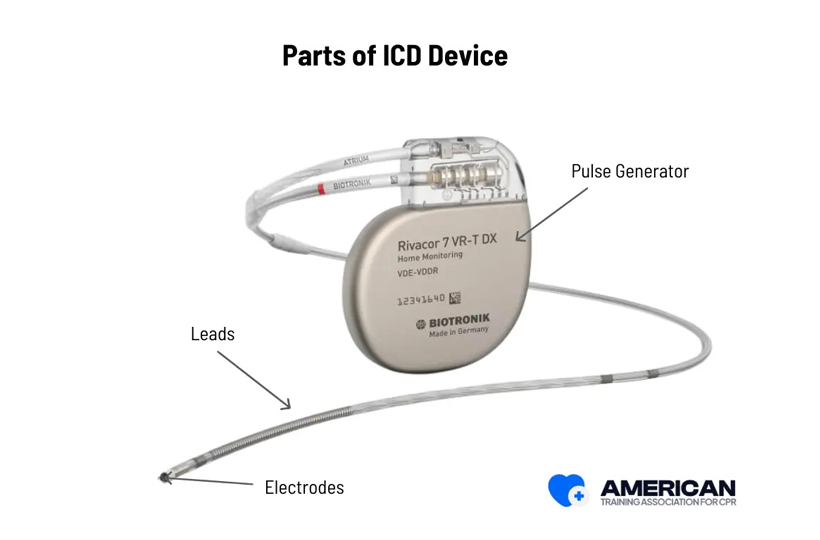 An AICD is a small device implanted under the skin, connected to your heart through thin wires (leads). It works by detecting dangerous arrhythmias and automatically delivering electrical shocks or pacing signals to correct them, protecting you from life-threatening cardiac events.